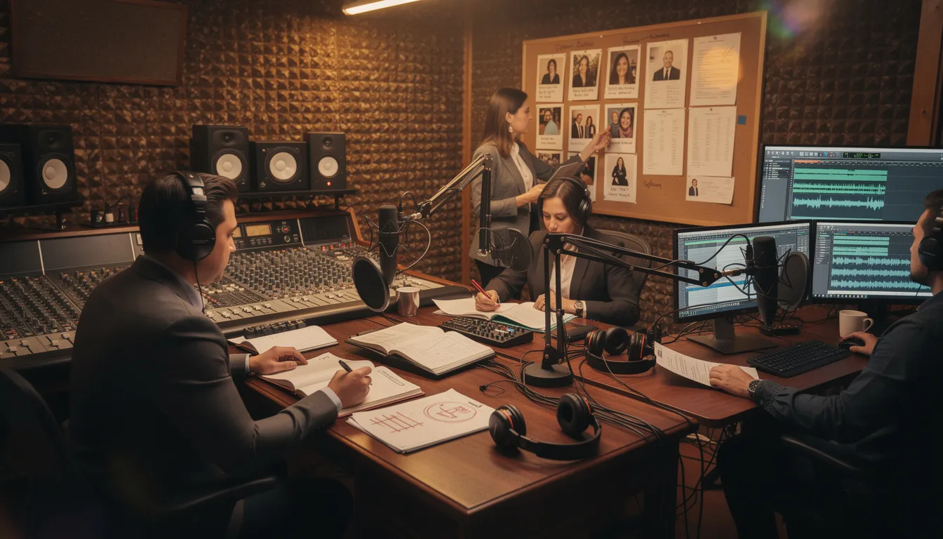 A podcast production team that handles episode planning, guest research, script drafting, show notes, and social promotion clips. From concept to published episode.